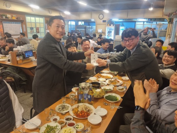 재경 토목공학과 모임 이재준 0 499 2023.12.21 08:15 2023년 12월 20일 서울에 근무하는 동문들이 모였습니다.류양규 회장님의 격려금도 하사해 주셨습니다.23년 승진하신 장지영 토목본부장님, 백황선 서기관님 축하 자리며 송년모임 이였습니다.